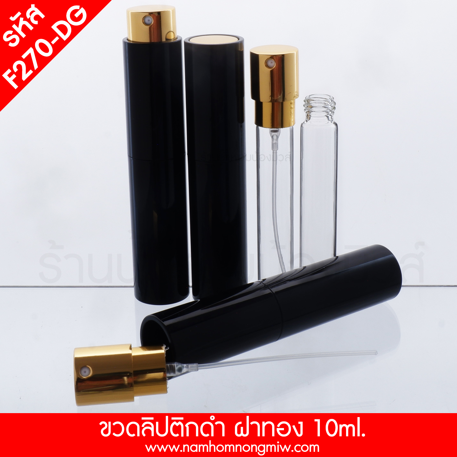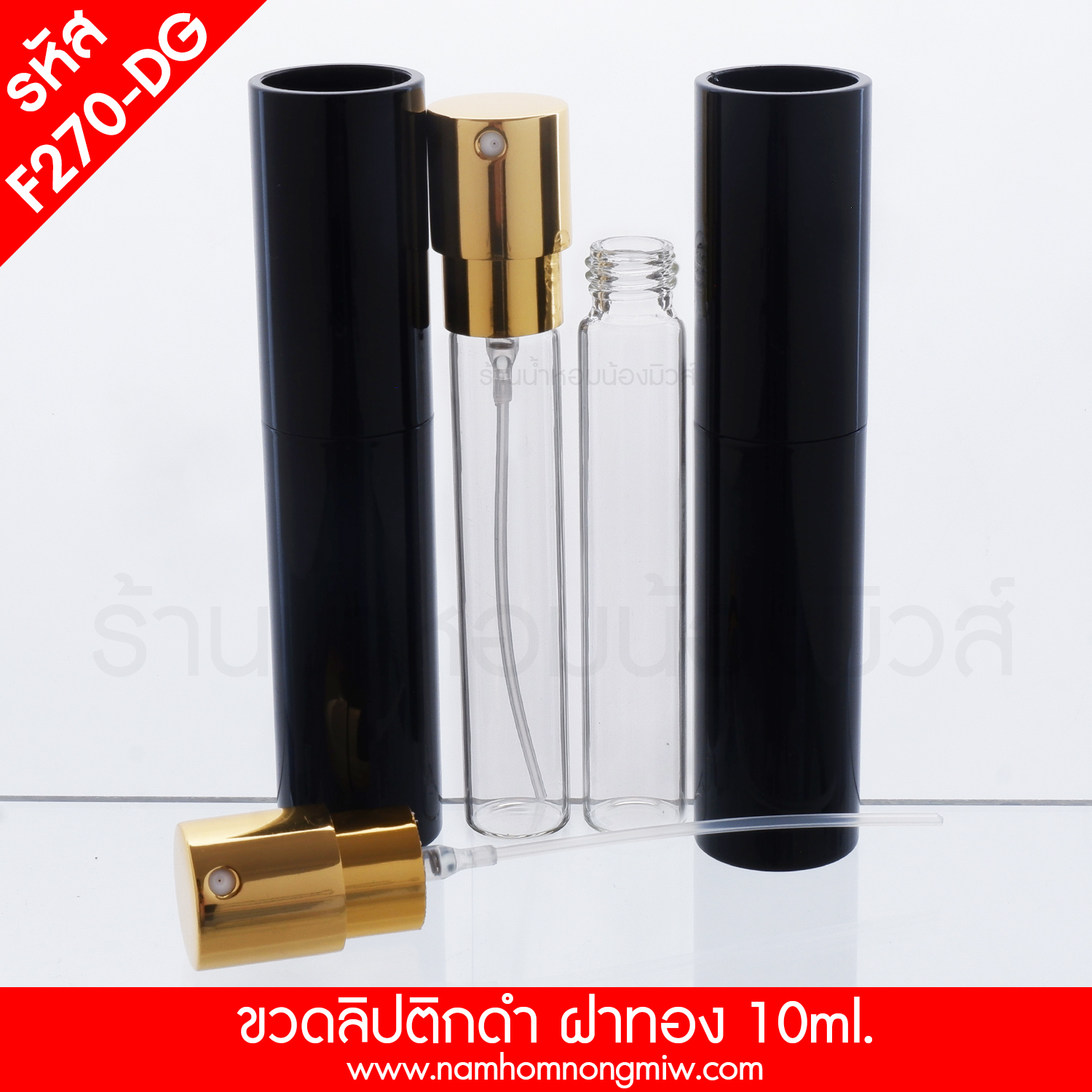ชื่อสินค้า : ขวดลิปติกดำ สเปรย์ทอง (เงา) 10ML.(A1)