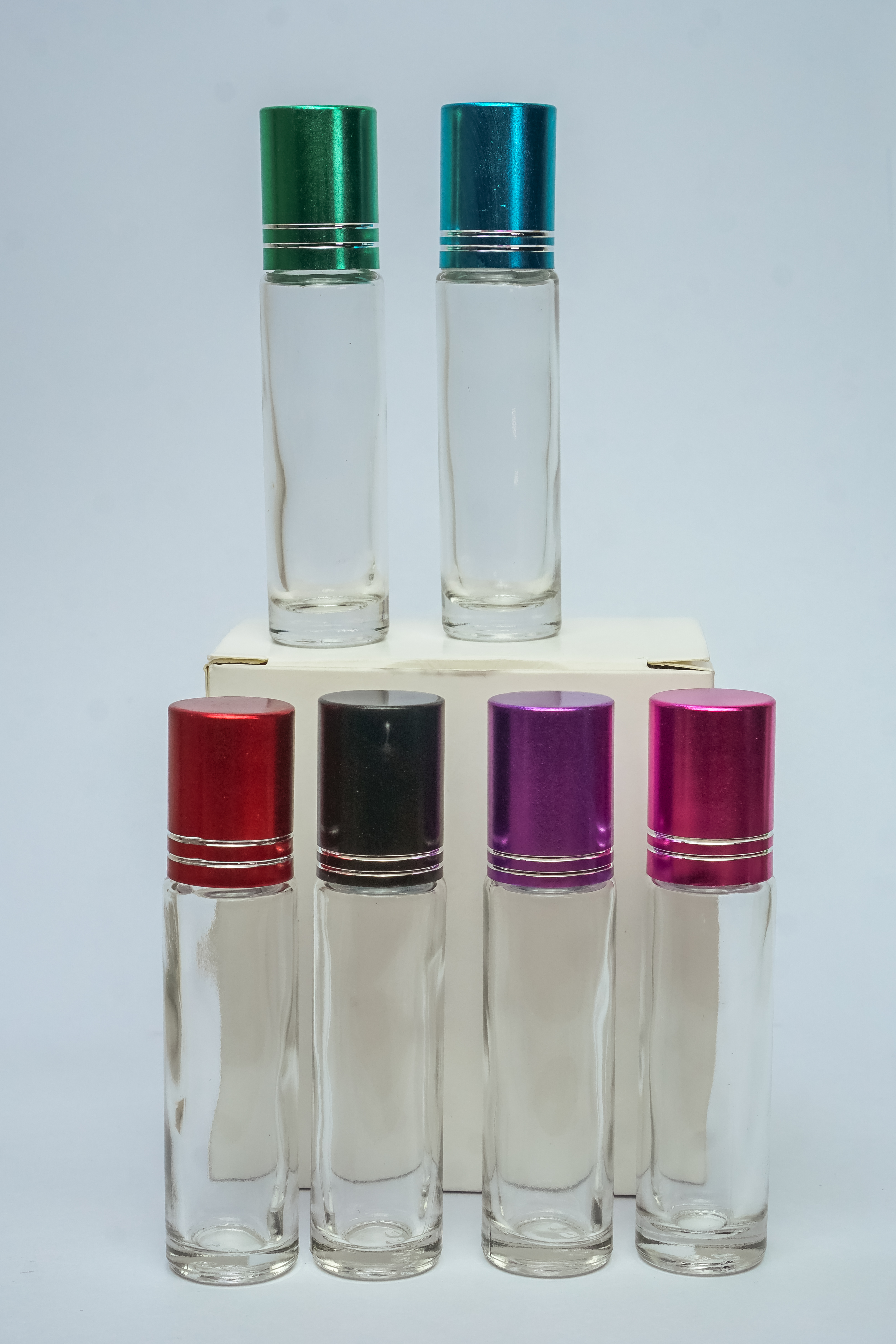 ชื่อสินค้า : ขวดลูกกลิ้งใส(มีขีด) ฝาคละสี 10ML. (F)