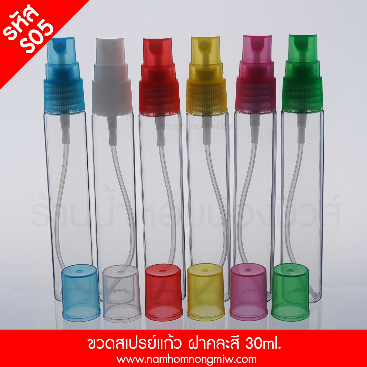 ชื่อสินค้า : ขวดสเปรย์แก้ว ฝาคละสี 30ML. (A7)