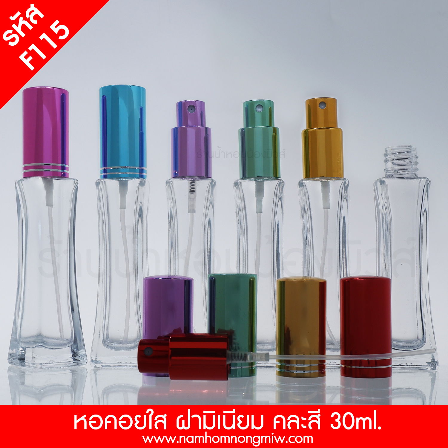 ชื่อสินค้า : ขวดหอคอยใส ฝามิเนียมคละสี 30ML. (A9)