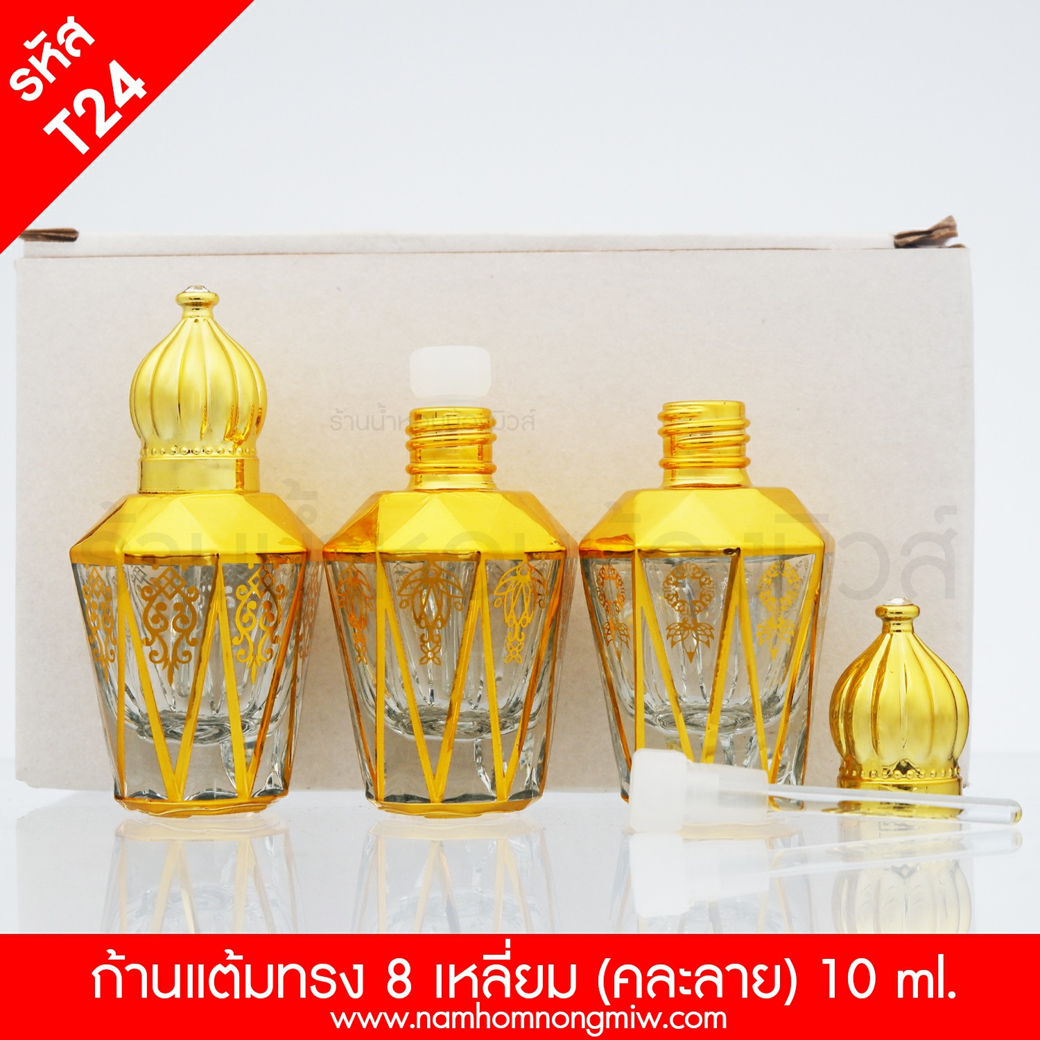 ชื่อสินค้า : ขวดก้านแต้ม8เหลี่ยม คละลาย 10ML.(F)